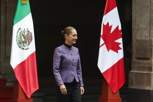 (260120) -- CIUDAD DE MEXICO, 20 enero, 2026 (Xinhua) -- La presidenta mexicana, Claudia Sheinbaum, asiste una ceremonia de bienvenida para la gobernadora general de Canadá, Mary Simon, en Palacio Nacional, en la Ciudad de México, capital de México, el 20 de enero de 2026. (Xinhua/Francisco Cañedo) (fc) (jg) (ra) (vf)