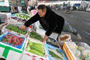 (260121) -- URUMQI, 21 enero, 2026 (Xinhua) -- Imagen del 19 de enero de 2026 de un vendedor acomodando verduras en el mercado mayorista de productos agrícolas de Jiuding, en Urumqi, en la región autónoma uygur de Xinjiang, en el noroeste de China. Una ola de frío masiva azotó recientemente la región autónoma uygur de Xinjiang, en el noroeste de China, provocando fuertes descensos de temperatura. Las autoridades de todos los sectores de la región han trabajado en coordinación para garantizar un amplio suministro de verduras y frutas. (Xinhua/Ding Lei) (jg) (da)