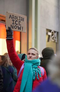 (260121) -- NUEVA YORK, 21 enero, 2026 (Xinhua) -- Imagen del 20 de enero de 2026 de una mujer asistiendo a una protesta, en Nueva York, Estados Unidos. (Xinhua/Zhang Fengguo) (jg) (da) (vf)