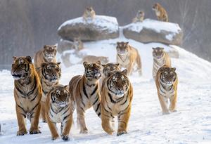 (260122) -- HAILIN, 22 enero, 2026 (Xinhua) -- Imagen del 21 de enero de 2026 de tigres siberianos vistos en la nieve en el Parque del Tigre Siberiano, en Hailin, en la provincia de Heilongjiang, en el noreste de China. (Xinhua/He Huawen) (jg) (ah) (vf)