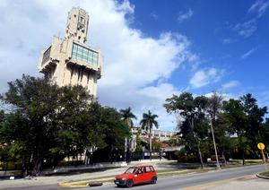 (260121) -- LA HABANA, 21 enero, 2026 (Xinhua) -- Un automóvil circula por la avenida frente a la Embajada de Rusia, en La Habana, capital de Cuba, el 21 de enero de 2026. (Xinhua/Joaquín Hernández) (jh) (jg) (da) (vf)