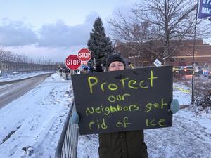 (260122) -- MINNEAPOLIS, 22 enero, 2026 (Xinhua) -- Imagen del 21 de enero de 2026 de un manifestante asistiendo a una protesta afuera del Edificio Federal Obispo Henry Whipple, en Minneapolis, Minnesota, Estados Unidos. El tiroteo fatal de una mujer estadounidense por parte de un agente del Servicio de Inmigración y Control de Aduanas de Estados Unidos en Minneapolis ha seguido avivando las tensiones a nivel local y nacional, ya que los funcionarios estatales y federales chocan fuertemente sobre cómo se desarrolló el incidente y cómo debería manejarse. (Xinhua) (rtg) (ra) (vf)