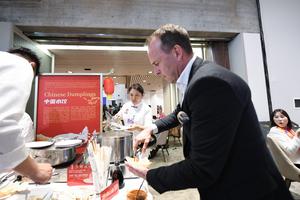(260121) -- DAVOS, 21 enero, 2026 (Xinhua) -- Imagen del 20 de enero de 2026 de un participante degustando dumplings chinos durante la recepción "Noche de Dalian" en la Reunión Anual del Foro Económico Mundial (FEM) 2026, en Davos, Suiza. La ciudad costera de Dalian, en el noreste de China, celebró aquí una recepción el martes por la noche, con presentaciones musicales y cocina gourmet local. Dalian acogerá en junio la Reunión Anual de los Nuevos Campeones 2026 del FEM, también conocida como Davos de Verano. (Xinhua/Lian Yi) (ah) (ra) (vf)