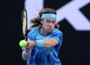 (260123) -- MELBOURNE, 23 enero, 2026 (Xinhua) -- Andrey Rublev devuelve la pelota durante el partido de tercera ronda de individuales masculinos entre Andrey Rublev, de Rusia, y Francisco Cerúndolo, de Argentina, en el torneo de tenis Abierto de Australia, en Melbourne, Australia, el 23 de enero de 2026. (Xinhua/Ma Ping) (oa) (ra) (vf)
