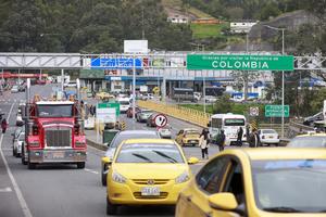 (260124) -- TULCAN, 24 enero, 2026 (Xinhua) -- Vehículos circulan por el Puente Internacional de Rumichaca, en la frontera entre Ecuador y Colombia, en la ciudad de Tulcán, en el norte de Ecuador, el 24 de enero de 2026. Ecuador aplicará una tasa de seguridad del 30 por ciento a las importaciones procedentes de Colombia desde el 1 de febrero próximo, anunció el miércoles el presidente ecuatoriano, Daniel Noboa. (Xinhua/Ricardo Landeta) (rl) (jg) (da)
