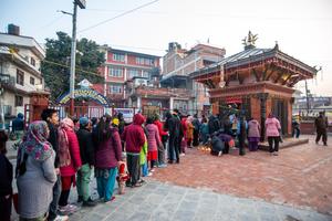 (260123) -- LALITPUR, 23 enero, 2026 (Xinhua) -- Devotos esperan en fila para ofrecer oraciones a la Diosa del Conocimiento Saraswati en la celebración del festival Basanta Panchami o Shree Panchami, en Lalitpur, Nepal, el 23 de enero de 2026. El festival se celebra adorando a Saraswati, la diosa hindú del conocimiento, la sabiduría, el aprendizaje, el arte, la música y la cultura. (Xinhua/Hari Maharjan) (oa) (ra) (vf)