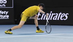 (260124) -- MELBOURNE, 24 enero, 2026 (Xinhua) -- Jannik Sinner, de Italia, sufre calambres durante el partido de tercera ronda de individuales masculinos entre Jannik Sinner, de Italia, y Eliot Spizzirri, de Estados Unidos, en el torneo de tenis Abierto de Australia, en Melbourne, Australia, el 24 de enero de 2026. (Xinhua/Hu Jingchen) (oa) (da)