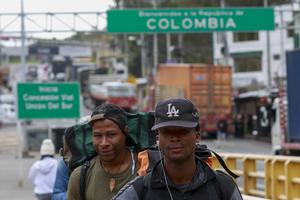 (260125) -- TULCAN, 25 enero, 2026 (Xinhua) -- Imagen del 24 de enero de 2026 de migrantes cruzando el puente internacional de Rumichaca, en la ciudad de Tulcán, en el norte de Ecuador. El presidente ecuatoriano, Daniel Noboa, anunció el pasado 21 de enero la decisión de Ecuador de aplicar una tasa de seguridad del 30 por ciento a productos procedentes de Colombia desde el 1 de febrero próximo, con el argumento de una supuesta falta de apoyo de Colombia en la lucha contra el narcotráfico en la frontera común. (Xinhua/Ricardo Landeta) (rl) (rtg) (da)