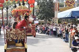 (260124) -- ANAHEIM, 24 enero, 2026 (Xinhua) -- Imagen del 23 de enero de 2026 de un artista disfrazado del clásico personaje animado de Disney, Horace Horsecollar, interactuando con visitantes durante un desfile en el Parque Disney California Adventure, en Anaheim, California, Estados Unidos. Disneyland Resort dio inicio el viernes a sus celebraciones anuales del Año Nuevo Lunar, transformando el parque en un vibrante escaparate de las culturas, la gastronomía y las tradiciones asiáticas que continúa despertando un interés creciente entre los visitantes estadounidenses. (Xinhua/Gao Shan) (oa) (da)