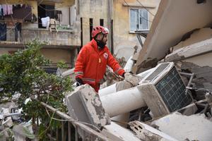 (260125) -- TRIPOLI, 25 enero, 2026 (Xinhua) -- Imagen del 24 de enero de 2026 de las operaciones de rescate en el sitio del colapso de un edificio residencial de cinco pisos, en el área de Qobbeh, de Trípoli, en el norte de Líbano. Al menos dos personas murieron el sábado después del colapso de un edificio residencial de cinco pisos al amanecer, en el área de Qobbeh de Trípoli, en el norte de Líbano, dijo la Defensa Civil. (Xinhua/Khaled Habashiti) (rtg) (da)
