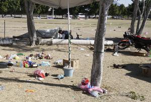 (260126) -- SALAMANCA, 26 enero, 2026 (Xinhua) -- Un hombre trabaja en un área acordonada cerca del campo de fútbol en donde ocurrió un tiroteo, en Salamanca, México, el 26 de enero de 2026. Un trágico episodio de violencia dejó un saldo de al menos 11 personas fallecidas y 12 heridas durante un ataque armado ocurrido la tarde del domingo en un campo de fútbol en la comunidad Loma de Flores, en la ciudad de Salamanca, estado central de Guanajuato, confirmó el Gobierno municipal. De acuerdo con los reportes oficiales, el ataque se registró alrededor de las 17:20 hora local (23:20 GMT) en las canchas conocidas como "Campos de las Cabañas", mientras se desarrollaba un partido de fútbol. Testigos señalaron que hombres armados llegaron al lugar a bordo de dos camionetas y, tras descender cuatro individuos, comenzaron a disparar indiscriminadamente contra los asistentes. (Xinhua/Mario Armas) (rtg) (ah) (vf)