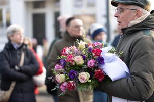 (260126) -- AMSTERDAM, 26 enero, 2026 (Xinhua) -- Imagen del 25 de enero de 2026 de un hombre depositando flores durante una ceremonia conmemorativa con motivo del Día Nacional en Memoria del Holocausto en el parque Wertheim, en Amsterdam, Países Bajos. El Día Nacional en Memoria del Holocausto se celebra anualmente en los Países Bajos el último domingo de enero. (Xinhua/Sylvia Lederer) (oa) (ah) (vf)