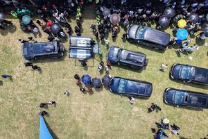 (260126) -- JOHANNESBURGO, 26 enero, 2026 (Xinhua) -- Vista aérea tomada con un dron el 25 de enero de 2026 de un funeral celebrado para las víctimas que murieron en el accidente de un vehículo escolar de Vanderbijlpark, en Sebokeng, Sudáfrica. El número de muertos se incrementó a 14 después de una colisión entre un minibus y un camión el 19 de enero en Vanderbijlpark, en el sur de Johannesburgo, Sudáfrica, confirmaron las autoridades locales. (Xinhua/Shiraaz Mohamed) (rtg) (ah) (vf)