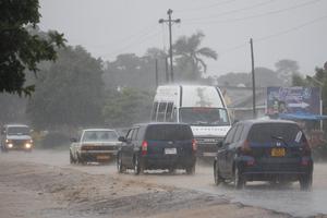(260125) -- HARARE, 25 enero, 2026 (Xinhua) -- Imagen del 24 de enero de 2026 de automóviles circulando bajo la fuerte lluvia, en Harare, Zimbabue. Las lluvias persistentes han afectado a gran parte de Zimbabue, en meses recientes, dejando a más de 70 personas muertas y causando daño extensivo a la infraestructura de autopistas. (Xinhua/Str) (rtg) (da)