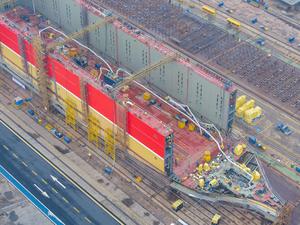 (260127) -- BEIJING, 27 enero, 2026 (Xinhua) -- Vista aérea tomada con un dron el 27 de enero de 2026 de trabajadores construyendo un buque en una fábrica de construcción naval, en Nanjing, en la provincia de Jiangsu, en el este de China. Las ganancias de las principales empresas industriales de China volvieron a crecer en 2025, rompiendo así una racha de tres años de caídas, y sectores emergentes como la fabricación de equipos y de alta tecnología actuaron como los principales motores de crecimiento. Los beneficios de dichas empresas aumentaron un 0,6 por ciento interanual hasta acercarse a 7,4 billones de yuanes (alrededor de 1,06 billones de dólares) el año pasado, según datos oficiales publicados el martes por el Buró Nacional de Estadísticas. Las principales empresas industriales son aquellas con ingresos anuales de al menos 20 millones de yuanes por concepto de su negocio principal. (Xinhua/Shi Jun) (jg) (ra)