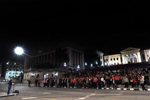 (260128) -- LA HABANA, 28 enero, 2026 (Xinhua) -- Imagen del 27 de enero de 2026 de la presidenta nacional de la Federación Estudiantil Universitaria, Litza Elena González Desdín (i), pronunciando un discurso en un acto para rendir tributo a los 32 combatientes cubanos caídos durante la agresión perpetrada por fuerzas de Estados Unidos en Venezuela el pasado 3 de enero, en el marco de la histórica Marcha de las Antorchas, en La Habana, capital de Cuba. Miles de jóvenes habaneros se reunieron el martes en la Escalinata de la Universidad de La Habana para reeditar la histórica Marcha de las Antorchas, que honra al héroe nacional José Martí, y rendir tributo al líder de la Revolución Cubana, Fidel Castro Ruz, en el año de su centenario. (Xinhua/Joaquín Hernández) (jh) (jg) (da) (vf)
