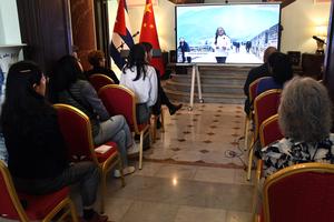 (260128) -- LA HABANA, 28 enero, 2026 (Xinhua) -- Imagen del 27 de enero de 2026 de personas observando la serie documental "Rumbo al Este: Cuba y China, hermanos en el tiempo" en la Embajada de China, en La Habana, capital de Cuba. La serie documental "Rumbo al Este: Cuba y China, hermanos en el tiempo", producida por Cubavisión Internacional con la colaboración de CGTN en Español, fue presentada el martes en la Embajada china en La Habana. (Xinhua/Joaquín Hernández) (jh) (jg) (da) (vf)