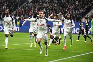 (260129) -- FRANKFURT, 29 enero, 2026 (Xinhua) -- Imagen del 28 de enero de 2026 de Xavi Simons (c), de Tottenham Hotspur, festejando una anotación que posteriormente fue descalificada por fuera de lugar durante el partido de fútbol de la Liga de Campeones de la UEFA entre Eintracht Frankfurt y Tottenham Hotspur, en Frankfurt, Alemania. (Xinhua/Ulrich Hufnagel) (da) (ra) (vf)