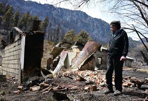 (260130) — CHUBUT, 30 enero, 2026 (Xinhua) — Imagen del 12 de enero de 2026 de Jésus, un residente de 50 años, observando su vivienda destruida después de los incendios, en la localidad de Epuyén, en la provincia de Chubut, Argentina. Incendios forestales arrasan la región patagónica de Argentina, en el sur del país, donde cientos de brigadistas combaten el fuego. (Xinhua/Maxi Jonas) (mz) (rtg) (ra) (vf)