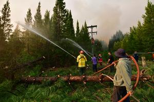(260130) -- CHUBUT, 30 enero, 2026 (Xinhua) -- Imagen del 8 de enero de 2026 de residentes y bomberos trabajando en el sitio de un incendio, en la localidad de Epuyén, en la provincia de Chubut, Argentina. Incendios forestales arrasan la región patagónica de Argentina, en el sur del país, donde cientos de brigadistas combaten el fuego. (Xinhua/Maxi Jonas) (mz) (rtg) (ra) (vf)