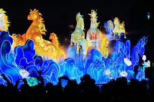 (260130) -- GUANGZHOU, 30 enero, 2026 (Xinhua) -- Imagen del 30 de enero de 2026 de un conjunto de linternas inspiradas en el caballo del zodíaco chino durante el espectáculo de linternas del Festival de la Primavera de Guangzhou 2026, en Guangzhou, en la provincia de Guangdong, en el sur de China. El evento comenzó el viernes en el parque Yuexiu en Guangzhou, con 85 grupos de exhibiciones de linternas distintivas repartidas por las diez principales áreas turísticas de todo el parque, y durará hasta el 8 de marzo. (Xinhua/Wang Ruiping) (oa) (ra) (vf)