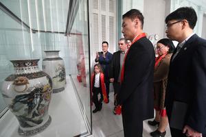 (260130) -- LA HABANA, 30 enero, 2026 (Xinhua) -- Imagen del 29 de enero de 2026 del embajador chino en Cuba, Hua Xin (i-frente), observando piezas de porcelana china expuesta durante la inauguración de la exposición "Susurros de arcilla: porcelanas chinas en el alma cubana" en el Museo Nacional de Artes Decorativas, en La Habana, capital de Cuba. Con motivo de la celebración del Año Nuevo chino, el jueves fue inaugurada en el Museo Nacional de Artes Decorativas de La Habana la exposición "Susurros de arcilla: porcelanas chinas en el alma cubana". (Xinhua/Joaquín Hernández) (jh) (jg) (da) (vf)