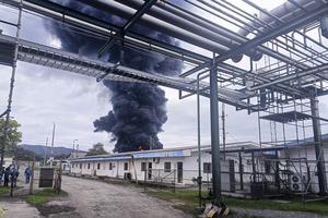 (260130) -- ESMERALDAS, 30 enero, 2026 (Xinhua) -- Humo emana durante un incendio ocurrido en una pileta de residuos en el área externa de la Refinería de Esmeraldas, en la ciudad de Esmeraldas, Ecuador, el 30 de enero de 2026. La Refinería de Esmeraldas, el principal complejo refinador de crudo de Ecuador, opera con normalidad tras controlar un incendio ocurrido el viernes, sin reportar heridos ni afectaciones, informó la empresa pública Petroecuador. (Xinhua/Str) (rl) (oa) (ra) (vf)