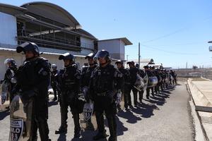 (260130) -- SAN VICENTE, 30 enero, 2026 (Xinhua) -- Agentes antidisturbios salvadoreños custodian bloques de celdas durante un recorrido del presidente electo de Chile, José Antonio Kast, por el Centro de Confinamiento del Terrorismo, en el municipio de Tecoluca, en el departamento de San Vicente, El Salvador, el 30 de enero de 2026. (Xinhua/Alexander Peña) (ap) (jg) (da) (vf)