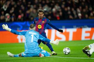 (260129) -- BARCELONA, 29 enero, 2026 (Xinhua) -- Imagen del 28 de enero de 2026 de Lamine Yamal (atrás), de FC Barcelona, pasando el balón a Robert Lewandowski para anotar, durante el partido de la fase de liga de la Liga de Campeones de la UEFA 2025/26 entre FC Barcelona y FC Copenhagen, celebrado en el Estadio Camp Nou, en Barcelona, España. (Xinhua/Joan Gosa) (rtg) (ra) (vf)