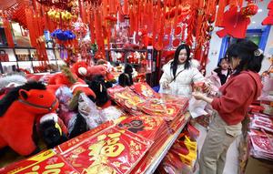 (260201) -- BEIJING,1 febrero, 2026 (Xinhua) -- Imagen del 31 de enero de 2026 de personas comprando decoraciones festivas en un centro comercial, en Beijing, capital de China. Con la proximidad del Festival de la Primavera, los centros comerciales de Beijing han comenzado a vender decoraciones festivas. (Xinhua/Li Xin) (oa) (ah)
