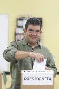 (260201) — SAN JOSE, 1 febrero, 2026 (Xinhua) — El candidato presidencial por el tradicional Partido Liberación Nacional, Alvaro Ramos, emite su voto en una casilla electoral durante las elecciones generales, en San José, Costa Rica, el 1 de febrero de 2026. Costa Rica inició el domingo la votación para elegir al próximo presidente, vicepresidentes y a los 57 diputados para el periodo de gobierno 2026-2030, con la apertura de las 7.154 juntas receptoras de votos en todo el país. (Xinhua/Francisco Cañedo) (fc) (oa) (ah)