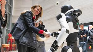 (260201) -- BELGRADO, 1 febrero, 2026 (Xinhua) -- Imagen del 30 de enero de 2026 de una visitante interactuando con un robot humanoide en el Centro Cultural Chino, en Belgrado, Serbia. Una gala musical y operística inmersiva en el Centro Cultural Chino de Belgrado atrajo a cientos de asistentes el viernes por la noche, marcando el inicio de las celebraciones del Año Nuevo chino 2026 en Serbia. (Xinhua/Wang Wei) (oa) (da)