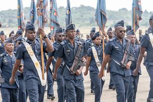 (260131) -- PRETORIA, 31 enero, 2026 (Xinhua) -- Imagen del 30 de enero de 2026 de soldados de la Fuerza Aérea Sudafricana asistiendo al desfile anual del Día del Prestigio en la Base de la Fuerza Aérea Swartkop, en Pretoria, Sudáfrica. (Xinhua/Shiraaz Mohamed) (oa) (da)