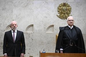 (260202) -- BRASILIA, 2 febrero, 2026 (Xinhua) -- El presidente brasileño, Luiz Inácio Lula da Silva (i), y el presidente del Supremo Tribunal Federal (STF) de Brasil, Luiz Edson Fachin (d), asisten a la sesión de apertura del Año Judicial 2026, en la sede del STF, en Brasilia, Brasil, el 2 de febrero de 2026. Lula da Silva afirmó el lunes, durante la apertura del Año Judicial en el STF en Brasilia, que las elecciones generales de octubre impondrán el desafío de actuar con máximo rigor contra la manipulación digital y las noticias falsas para proteger la soberanía del voto. (Xinhua/Lucio Tavora) (lt) (rtg) (ah) (vf)