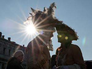 (260202) -- VENECIA, 2 febrero, 2026 (Xinhua) -- Imagen del 1 de febrero de 2026 de juerguistas posando en la Plaza de San Marcos durante el Carnaval de Venecia 2026, en Venecia, Italia. La edición de 2026 del tradicional Carnaval de Venecia se celebra del 31 de enero al 17 de febrero. (Xinhua/Li Jing) (oa) (ah) (vf)