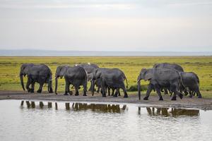 (260202) -- NAIROBI, 2 febrero, 2026 (Xinhua) -- Imagen del 1 de febrero de 2026 de elefantes africanos caminando por las orillas del lago Amboseli, en el distrito de Kajiado, Kenia. El Día Mundial de los Humedales se celebra cada año el 2 de febrero para crear conciencia mundial sobre el papel vital de los humedales para las personas, la naturaleza y la cultura. Kenia cuenta con una de las mayores diversidades de tipos de humedales de Africa Oriental, con humedales como el lago Amboseli y el lago Naivasa, que desempeñan un papel importante en la seguridad de los recursos hídricos locales, la conservación de la biodiversidad, la producción de alimentos y la regulación del clima. (Xinhua/Xie Jianfei) (oa) (ah)