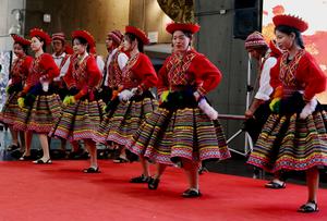 (260202) -- LIMA, 2 febrero, 2026 (Xinhua) -- Imagen del 1 de febrero de 2026 de estudiantes realizando una presentación de danza peruana durante la celebración del Día de la Confraternidad Peruano-China y la Feria Tradicional del Año Nuevo chino en el Ministerio de Cultura, en Lima, Perú. Peruanos vivieron el domingo un ambiente colorido y festivo durante la celebración del Día de la Confraternidad Peruano-China y la Feria Tradicional del Año Nuevo chino, realizada en las inmediaciones del Ministerio de Cultura en la ciudad de Lima. (Xinhua/Mariana Bazo) (mb) (oa) (ah) (vf)