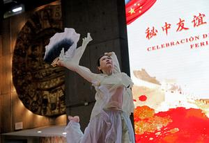 (260202) -- LIMA, 2 febrero, 2026 (Xinhua) -- Imagen del 1 de febrero de 2026 de una bailarina realizando una presentación de una danza típica china durante la celebración del Día de la Confraternidad Peruano-China y la Feria Tradicional del Año Nuevo chino en el Ministerio de Cultura, en Lima, Perú. Peruanos vivieron el domingo un ambiente colorido y festivo durante la celebración del Día de la Confraternidad Peruano-China y la Feria Tradicional del Año Nuevo chino, realizada en las inmediaciones del Ministerio de Cultura en la ciudad de Lima. (Xinhua/Mariana Bazo) (mb) (oa) (ah) (vf)