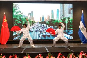 (260203) -- SAN SALVADOR, 3 febrero, 2026 (Xinhua) -- Imagen del 2 de febrero de 2026 de estudiantes del Instituto Confucio de El Salvador realizando una presentación durante una recepción por la celebración del Año Nuevo chino, organizada por la Embajada de China en El Salvador, en el departamento de San Salvador, capital de El Salvador. A pocos días del inicio del Año Nuevo chino del calendario lunar, la Embajada de China en El Salvador ofreció el lunes una recepción conmemorativa que reunió a autoridades salvadoreñas, cuerpo diplomático, empresarios y miembros de la comunidad china, en un ambiente de intercambio cultural y de celebración de la amistad bilateral. (Xinhua/Alexander Peña) (ap) (oa) (ah) (vf)