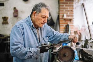 (260203) — JALISCO, 3 febrero, 2026 (Xinhua) — Imagen del 17 de enero de 2026 de un trabajador puliendo un cuchillo en el taller “Cuchillos Ojeda”, en el municipio de Sayula, en el estado de Jalisco, México. En el sur del occidental estado mexicano de Jalisco, el municipio de Sayula mantiene viva una tradición metalúrgica que ha pasado de generación en generación: entre hornos, limas y aceros templados, la producción de cuchillos artesanales Ojeda se ha consolidado como ejemplo de patrimonio cultural vivo y de cómo un oficio tradicional puede integrarse a mercados contemporáneos sin perder identidad. (Xinhua/Miriam Jiménez) (fc) (jg) (ra) (vf)