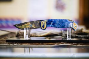 (260203) — JALISCO, 3 febrero, 2026 (Xinhua) — Imagen del 17 de enero de 2026 de un cuchillo fabricado con incrustaciones de oro, grabado artesanal y un mango de lapislázuli visto en el taller “Cuchillos Ojeda”, en el municipio de Sayula, en el estado de Jalisco, México. En el sur del occidental estado mexicano de Jalisco, el municipio de Sayula mantiene viva una tradición metalúrgica que ha pasado de generación en generación: entre hornos, limas y aceros templados, la producción de cuchillos artesanales Ojeda se ha consolidado como ejemplo de patrimonio cultural vivo y de cómo un oficio tradicional puede integrarse a mercados contemporáneos sin perder identidad. (Xinhua/Miriam Jiménez) (fc) (jg) (ra) (vf)