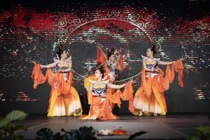 (260204) -- BUENOS AIRES, 4 febrero, 2026 (Xinhua) -- Imagen del 3 de febrero de 2026 de artistas realizando una presentación de danza durante la recepción llevada a cabo en el marco de las celebraciones del Año Nuevo chino o Festival de la Primavera, en la ciudad de Buenos Aires, capital de Argentina. La ciudad de Buenos Aires fue escenario el martes de una velada dedicada a las expresiones artísticas y las tradiciones de China, organizada por la Embajada de China en Argentina con motivo de la próxima llegada del Año Nuevo chino del calendario lunar y el signo del Caballo del horóscopo tradicional chino. (Xinhua/Martín Zabala) (mz) (jg) (da) (vf)