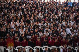 (260204) -- BOGOTA, 4 febrero, 2026 (Xinhua) -- Estudiantes asisten a la celebración del Año Nuevo chino en el Colegio Corazonista, en Bogotá, capital de Colombia, el 4 de febrero de 2026. Con presentaciones culturales y la tradicional danza del León se realizó el miércoles la celebración del Año Nuevo chino en el Colegio Corazonista de Bogotá, al tiempo que se oficializó su incursión como nuevo punto de enseñanza del idioma mandarín en la capital colombiana. (Xinhua/Andrés Moreno) (am) (jg) (ra) (vf)