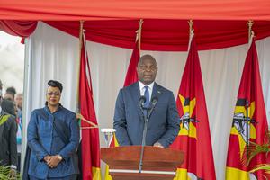 (260204) -- MAPUTO, 4 febrero, 2026 (Xinhua) -- Imagen del 3 de febrero de 2026 del presidente mozambiqueño, Daniel Chapo, asistiendo a una ceremonia conmemorativa del Día de los Héroes en el Monumento a los Héroes, en Maputo, Mozambique. Chapo pidió el martes por una renovada unidad nacional y valores patrióticos, describiendo a los héroes del país como la base de la paz, la soberanía y el desarrollo sostenible, mientras la nación conmemoraba el Día de los Héroes. (Xinhua/Mendes Mondlane) (jg) (da) (vf)