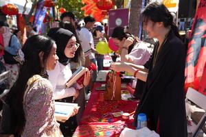 (260204) — CIUDAD DEL CABO, 4 febrero, 2026 (Xinhua) — Imagen del 1 de febrero de 2026 de personas aprendiendo a elaborar adornos con nudos chinos durante un evento en celebración del Año Nuevo chino, en Ciudad del Cabo, Sudáfrica. (Xinhua/Wang Lei) (ah) (ra) (vf)
