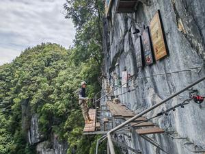 (260205) -- GUIYANG, 5 febrero, 2026 (Xinhua) -- Imagen del 11 de julio de 2024 de un entrenador realizando una escalada vía ferrata en una cafetería en un acantilado, en el distrito de Libo, en la provincia de Guizhou, en el suroeste de China. Esta cafetería en un acantilado es solo un ejemplo de la tendencia "Coffee Plus" que se extiende por la montañosa provincia de Guizhou, donde emprendedores locales están convirtiendo los espectaculares paisajes de la provincia en escenarios de consumo únicos. (Xinhua/Wu Si) (da) (ra)