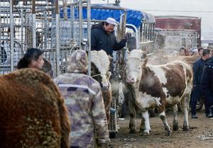 (260205) -- GUYUAN, 5 febrero, 2026 (Xinhua) -- Imagen del 4 de febrero de 2026 de clientes comprando ganado en el mercado de comercio de ganado de Shanjiaji, en el distrito de Xiji, en la región autónoma hui de Ningxia, en el noroeste de China. El miércoles se conmemora el "Lichun", o el Comienzo de la Primavera, el primero de los 24 términos solares del calendario lunisolar chino. También es un día de negocio en el mercado de comercio de ganado de Shanjiaji. En los últimos años, el mercado se ha convertido en uno de los mercados de comercio de ganado a nivel de aldea más grandes de la zona, actualmente comercializa más de 250.000 cabezas de ganado vacuno al año. (Xinhua/Yang Zhisen) (da) (ra) (vf)