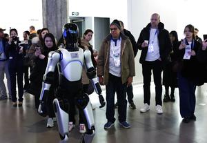 (260205) -- SHANGHAI, 5 febrero, 2026 (Xinhua) -- Imagen del 4 de febrero de 2026 de visitantes observando un robot humanoide en un área de exposición temporal de inteligencia artificial en el Museo WorldSkills, en Shanghai, en el este de China. Como una de las actividades de la 48 Semana de Preparación de la Competencia de Habilidades Mundiales, se llevó a cabo aquí el miércoles la campaña de promoción de Shanghai y el evento de experiencia en patrimonio cultural inmaterial, al que asistieron más de 700 invitados nacionales e internacionales. (Xinhua/Fang Zhe) (jg) (ah) (ra)