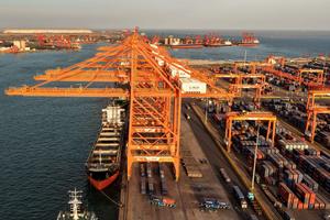 (260206) -- TANGSHAN, 6 febrero, 2026 (Xinhua) -- Vista aérea tomada con un dron el 5 de febrero de 2026 de barcos cargando contenedores en un muelle del puerto de Tangshan, en la provincia de Hebei, en el norte de China. El volumen de carga de comercio exterior en el puerto de Tangshan alcanzó los 381,56 millones de toneladas en 2025, lo que supone un aumento interanual del 2,59 por ciento. (Xinhua/Yang Shiyao) (oa) (ra) (vf)