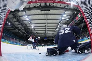 (260206) -- MILAN, 6 febrero, 2026 (Xinhua) -- La guardameta Alice Philbert, de Francia, detiene una anotación durante el partido del Grupo B de la ronda preliminar femenina entre Francia y Japón de hockey sobre hielo de los Juegos Olímpicos de Invierno Milán-Cortina 2026, en Milán, Italia, el 6 de febrero de 2026. (Xinhua/Zhang Cheng/Pool) (rtg) (ra) (vf)